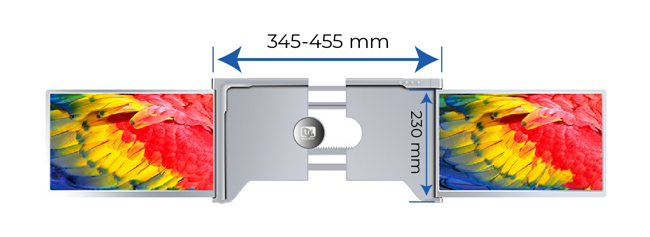 15.6″ Trimonitör’ün arka paneli minimum 345mm ve maksimum 455mm aralığında kullanıma uygundur.