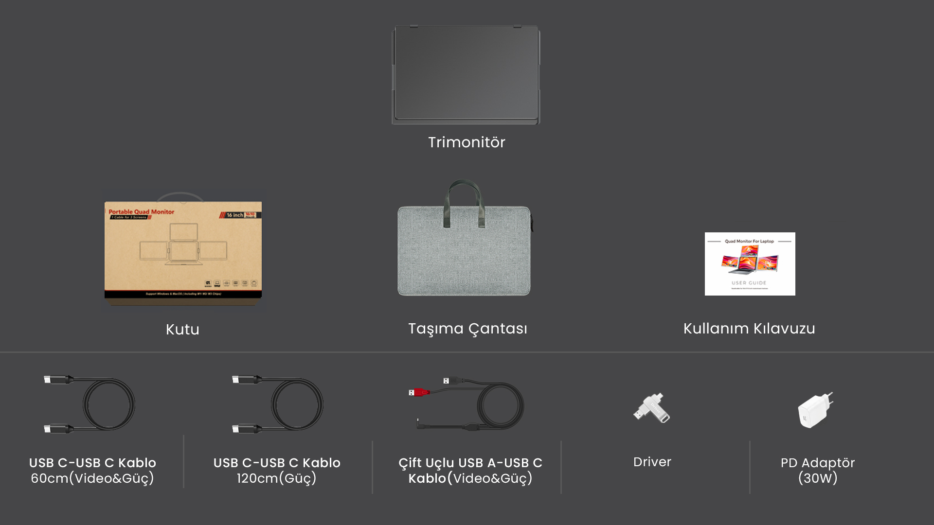 Bilgisayarınızı 16" Üçlü Trimonitör Üzerinden Şarj Edin